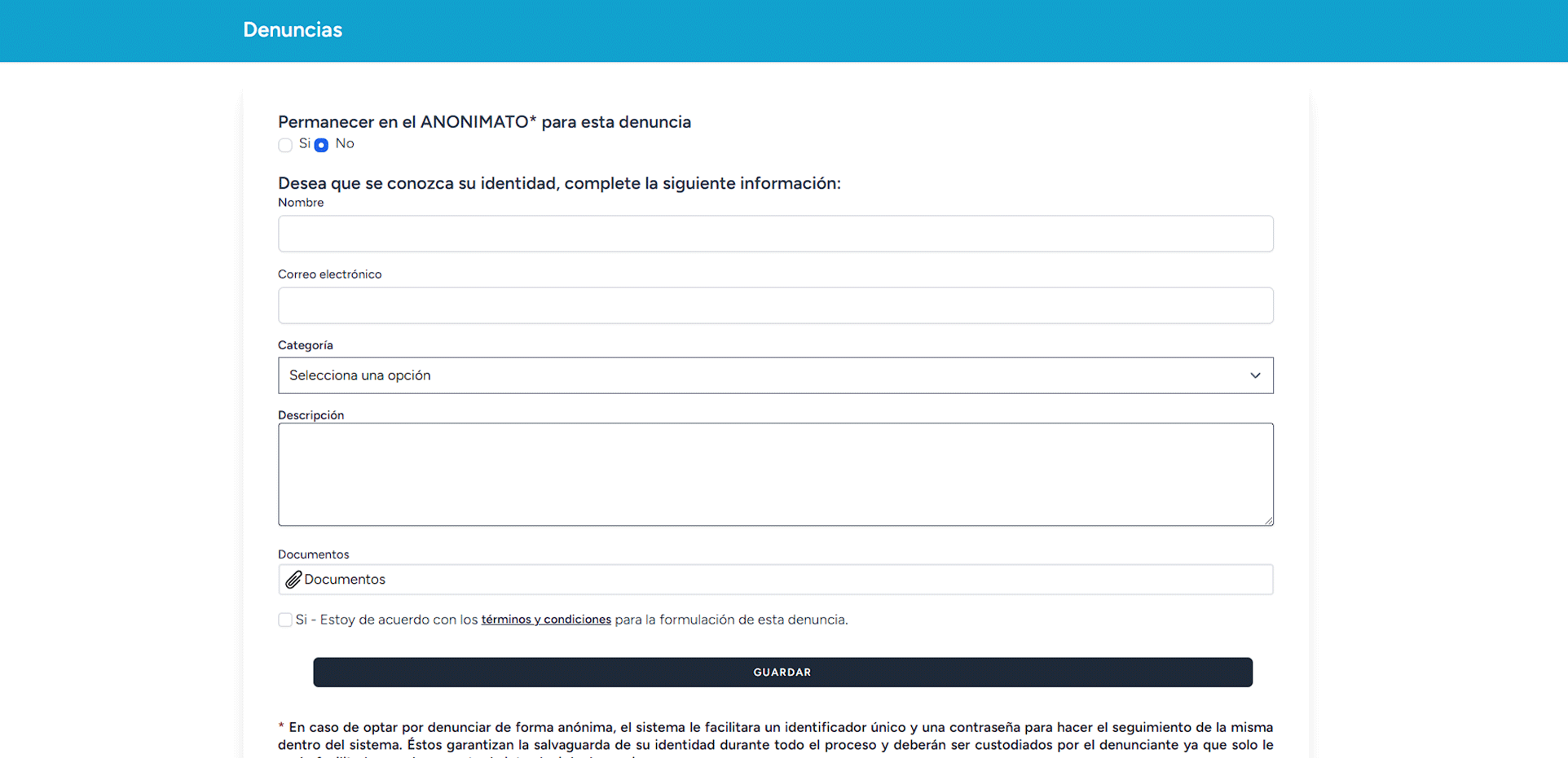 - Marca Blanca, canaldenuncia.com/cliente (Logo e imagen del cliente)